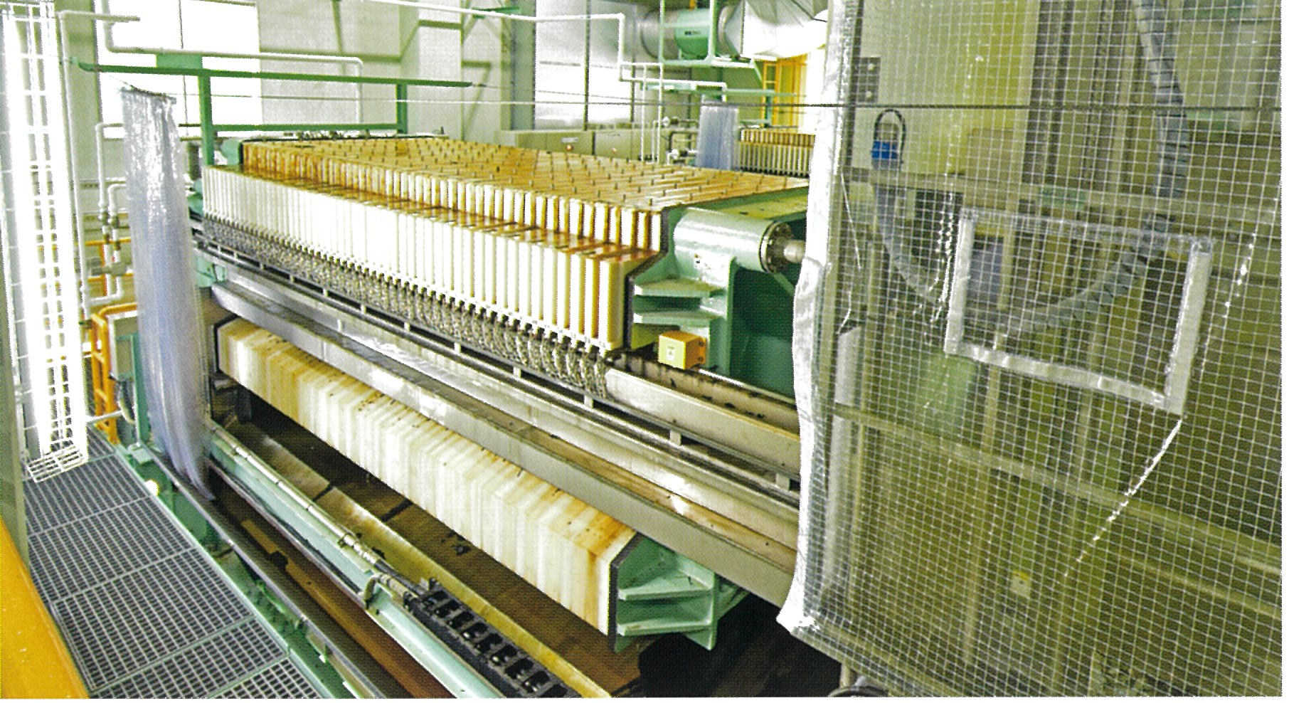 沈殿槽で沈降分離した汚泥と凝集沈殿槽で沈降した汚泥は濃縮してからフィルタープレス型脱水機によって脱水します。 |