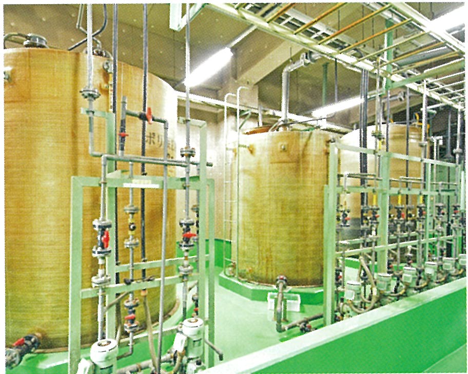 施設内で使用する薬品はFRP製のタンクに貯蔵し、注入ポンプにて各設備へ送っています。 |