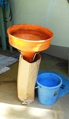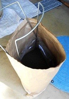 袋入れが終わりましたら、中身がこぼれないようにヒモなどで口をしばってください。